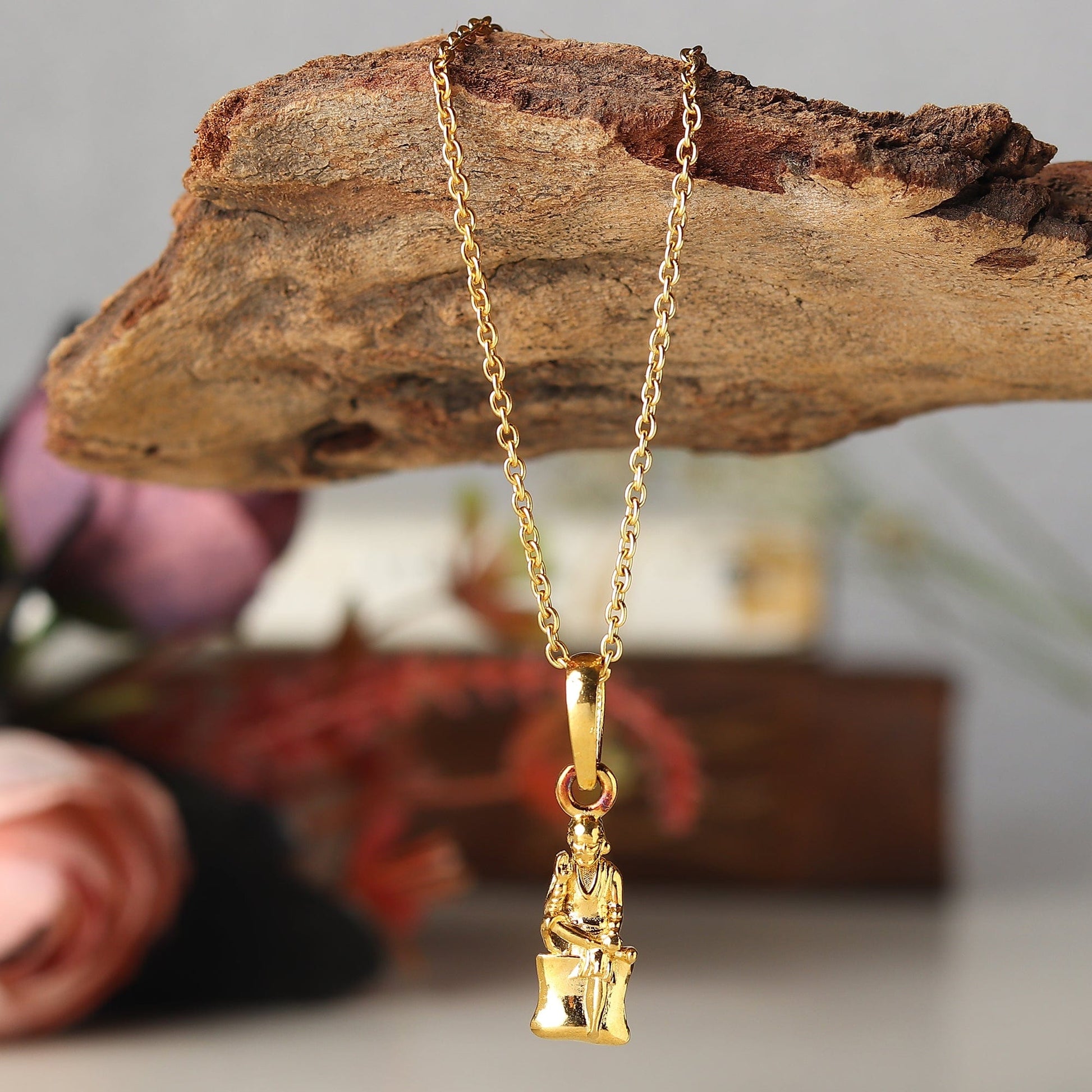 22CT Gold Plated Sterling Silver 92.5% Purity God Sai Baba Pendant with Rope Chain 22 Inches for Men by Akshat Sapphire MPSR7021_Gold