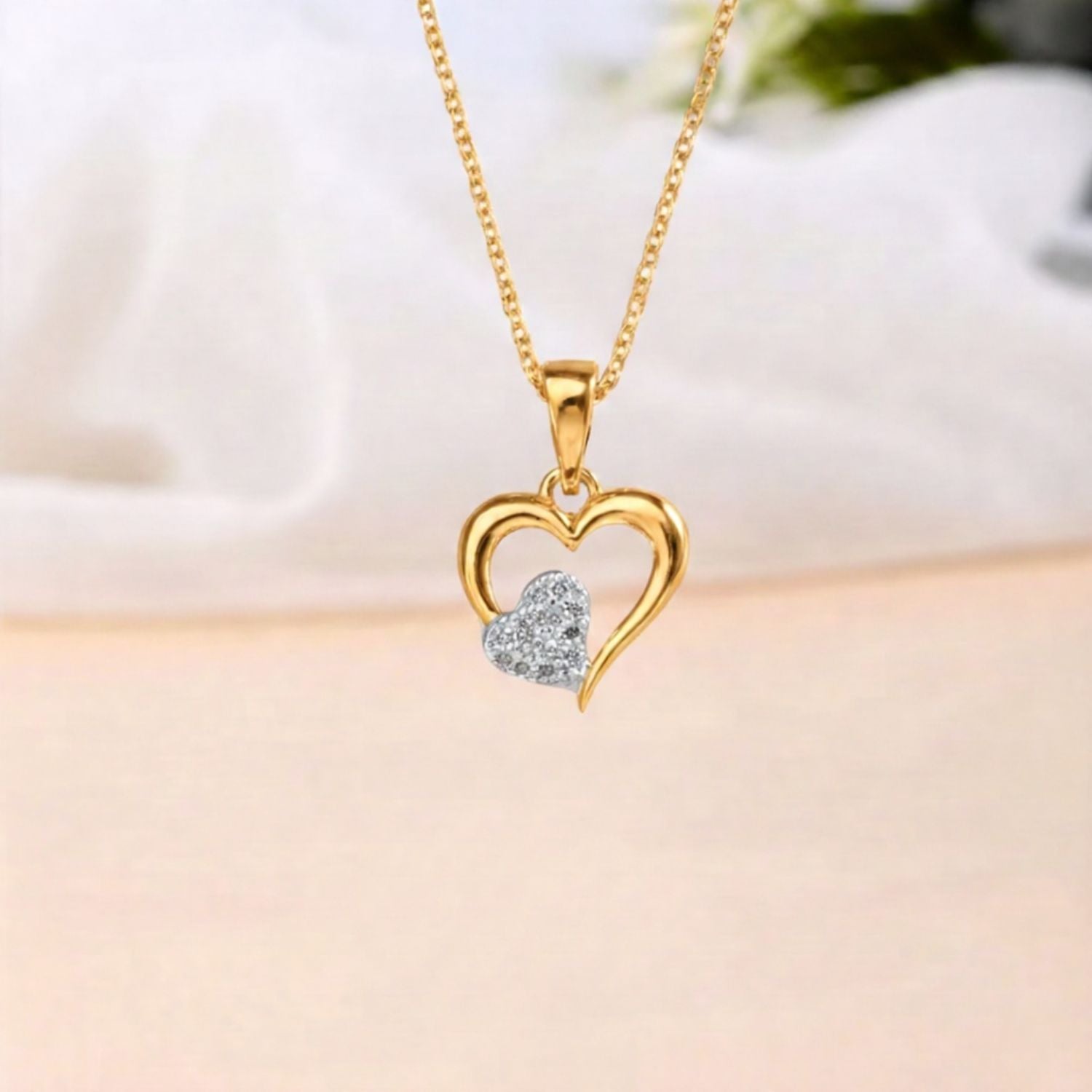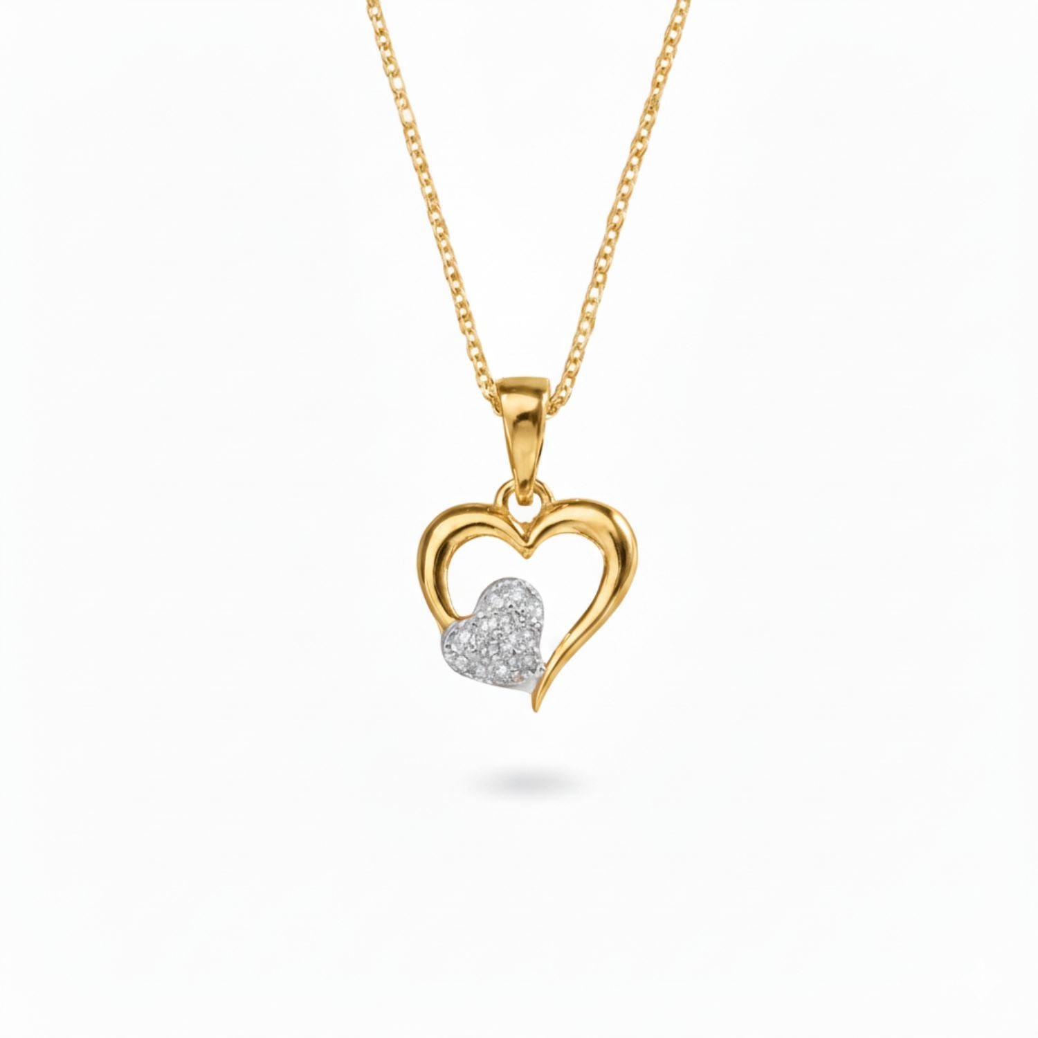 "Enhance your everyday jewellery collection with this elegant gold plated heart chain pendant for women, designed to reflect love, grace, and modern style. This beautifully crafted open-heart pendant features a sparkling crystal heart at the center, giving it a soft yet eye-catching appeal. The pendant is finished with premium gold plating that offers a rich shine and smooth surface, making it suitable for both daily wear and special occasions. Paired with an 18 inches anchor chain, this chain pendant sits perfectly on the neckline and adds a balanced, graceful look. Its lightweight design ensures comfortable wear throughout the day, while the stylish heart motif makes it an ideal accessory for women who prefer minimal yet meaningful jewellery. Whether styled with ethnic outfits, western dresses, or casual wear, this heart chain pendant adds charm and elegance to every look. A perfect gifting option, this chain pendant is ideal for birthdays, anniversaries, Valentine’s Day, or as a thoughtful surprise for someone special.