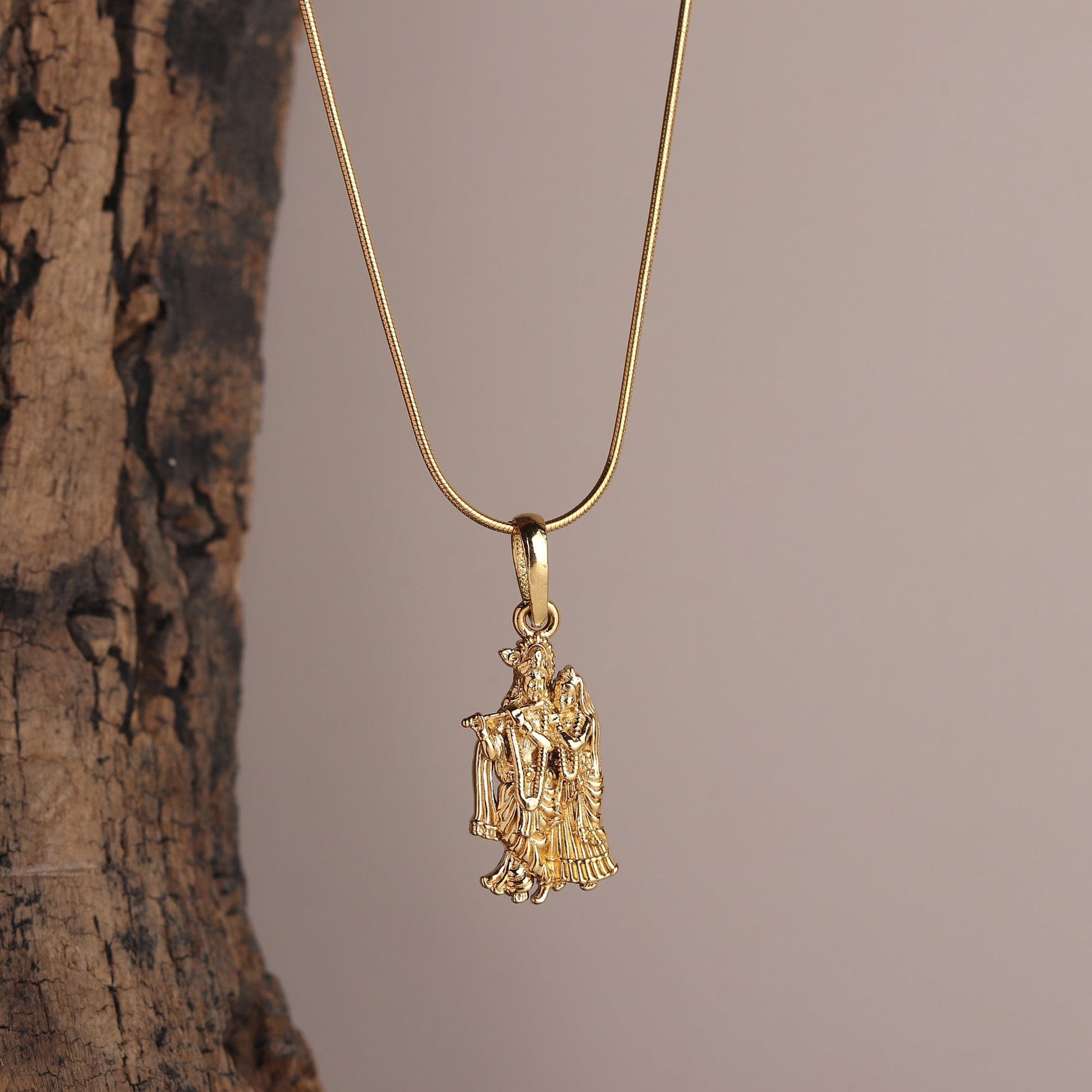 22Kt Gold Plated Sterling Silver (Silver With 92.5% Purity) God Radha Krishan Ji Chain Pendant (Pendant With Rope Chain) Is An Ideal, Unique, And Devotional Gift Or An Accessory Available For All Age Group People. God Radha Krishna Are The Symbol Of True Love. You Be A Man, Woman, Boy, Girl, Or Still In Your School, This Chain Locket Of Lord Radha Krishna Can Be Worn By Anyone. It Is Manufactured And Designed With Pure Dedication, Divinity, And Sanctification Towards A Lord. 22Kt Gold Plated Sterling Silver Rope Chain Is Very Smooth, Skin Friendly And Complies All International Standards.