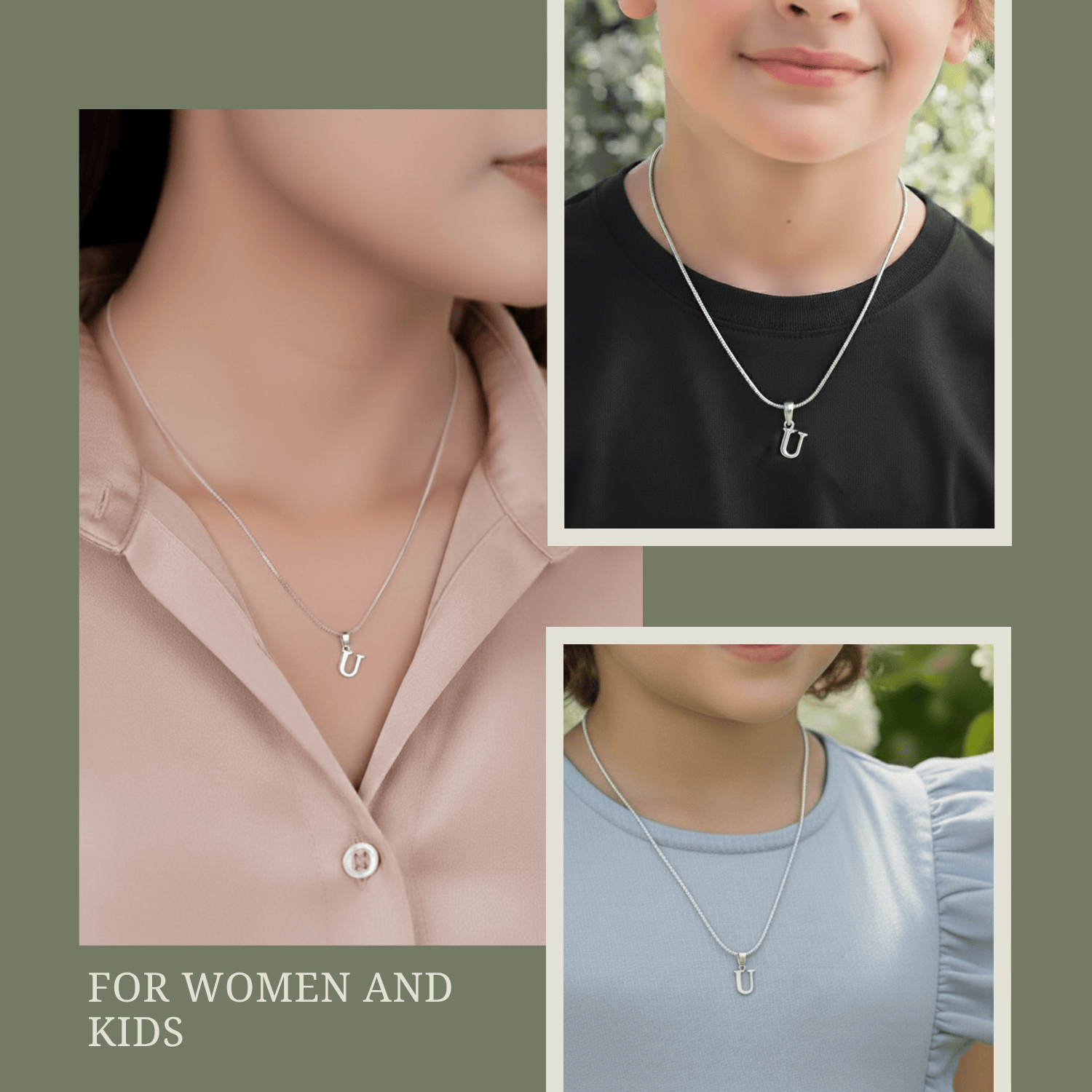 Alphabet U Pendant for Kids by Akshat Sapphire 92.5 Silver KD_U_8043