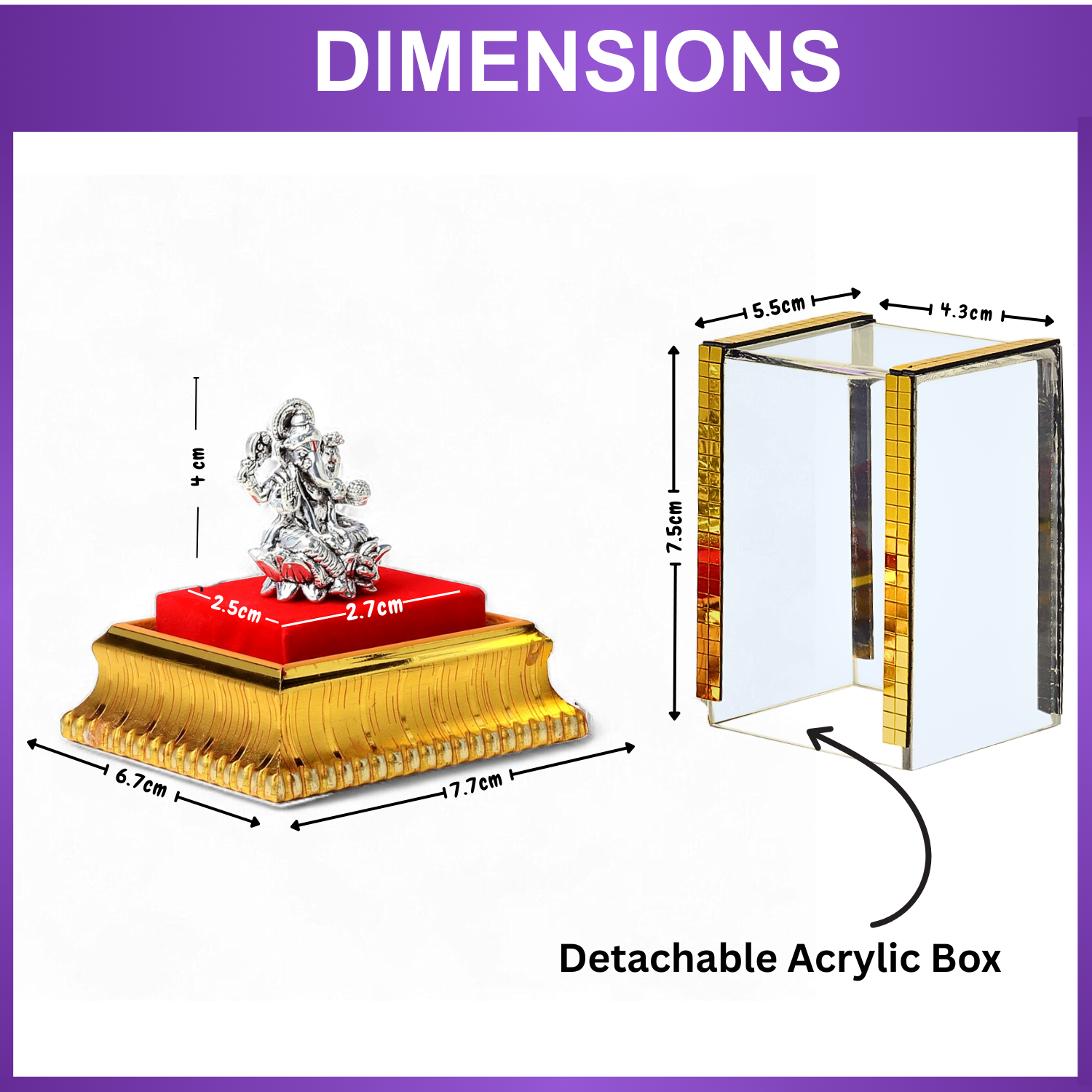 Bring home prosperity and positivity with the Akshat Sapphire Sitting Lord Ganesh Idol, beautifully handcrafted in 99.9% pure silver and encased in a premium acrylic box for protection and elegance. With intricate detailing, this idol features Ganesh Ji in a calm, blessing posture — symbolizing wisdom, peace, and new beginnings. Perfect for your home temple, office, or pooja room, this sacred piece by Akshat Sapphire adds spiritual charm and good fortune to any space. A meaningful gift for festivals, housewarmings, or personal devotion — it’s not just a symbol of faith, but a timeless work of art.