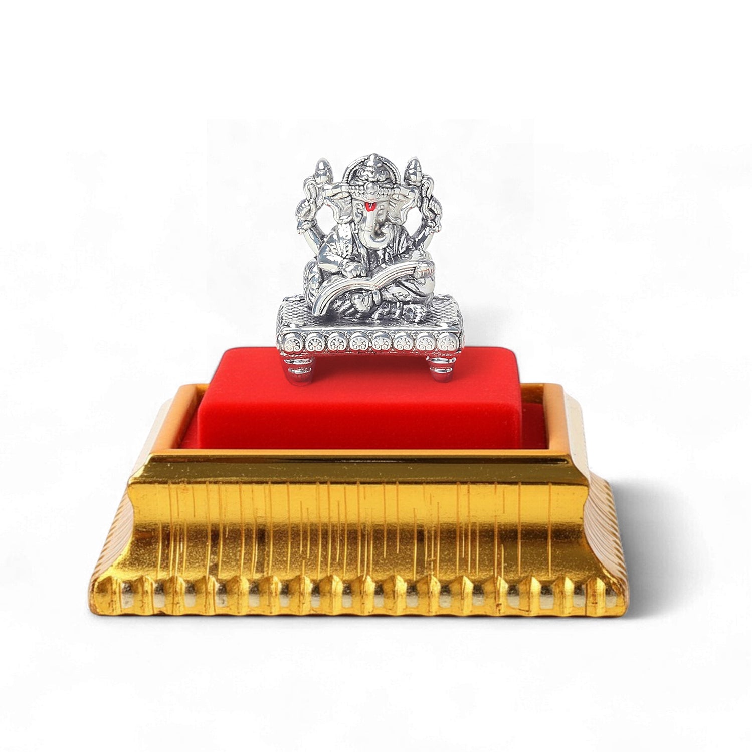 Bring home the divine blessings of Lord Ganesha with this exquisitely crafted idol by Akshat Sapphire, made from 99.9% pure silver. Depicted in a peaceful reading posture, holding a book in hand, this unique form of Ganesh Ji symbolizes knowledge, intellect, and prosperity. Perfectly suited for your home temple, study or office desk, or as a thoughtful spiritual gift, the idol brings a calm and inspiring presence to any space. A meaningful piece for learners, professionals, or devotees seeking wisdom and success.