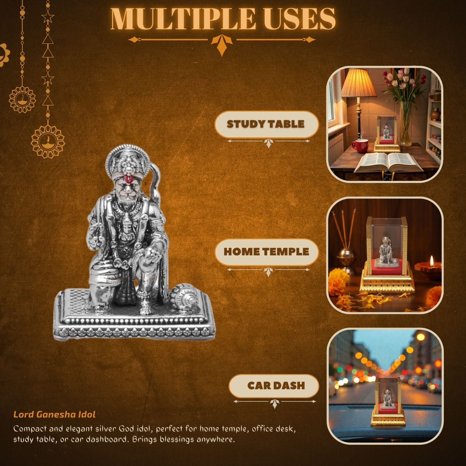 - Usage : Ideal for your home mandir, living room, study, or workplace — adding a spiritual and artistic presence.