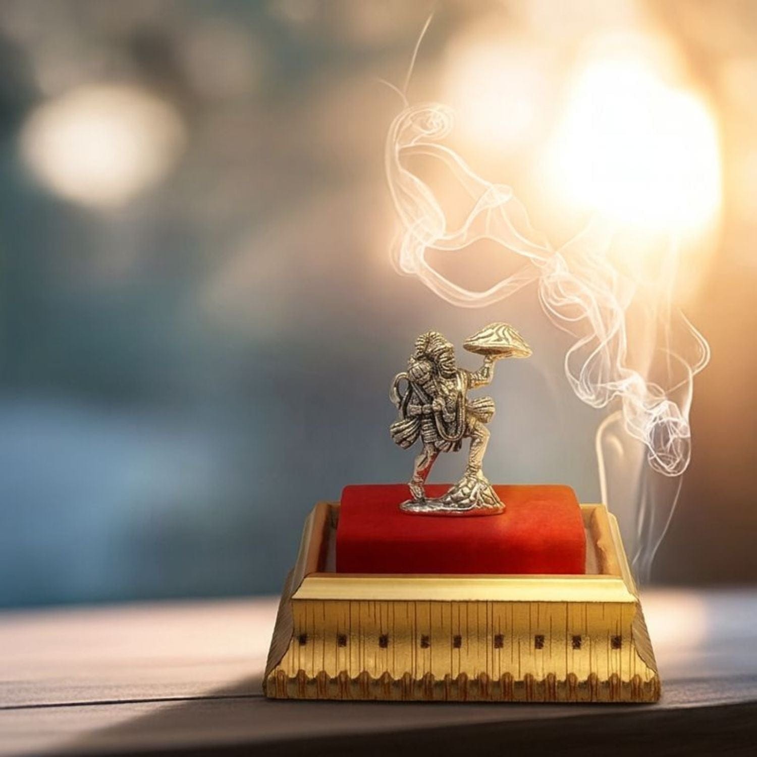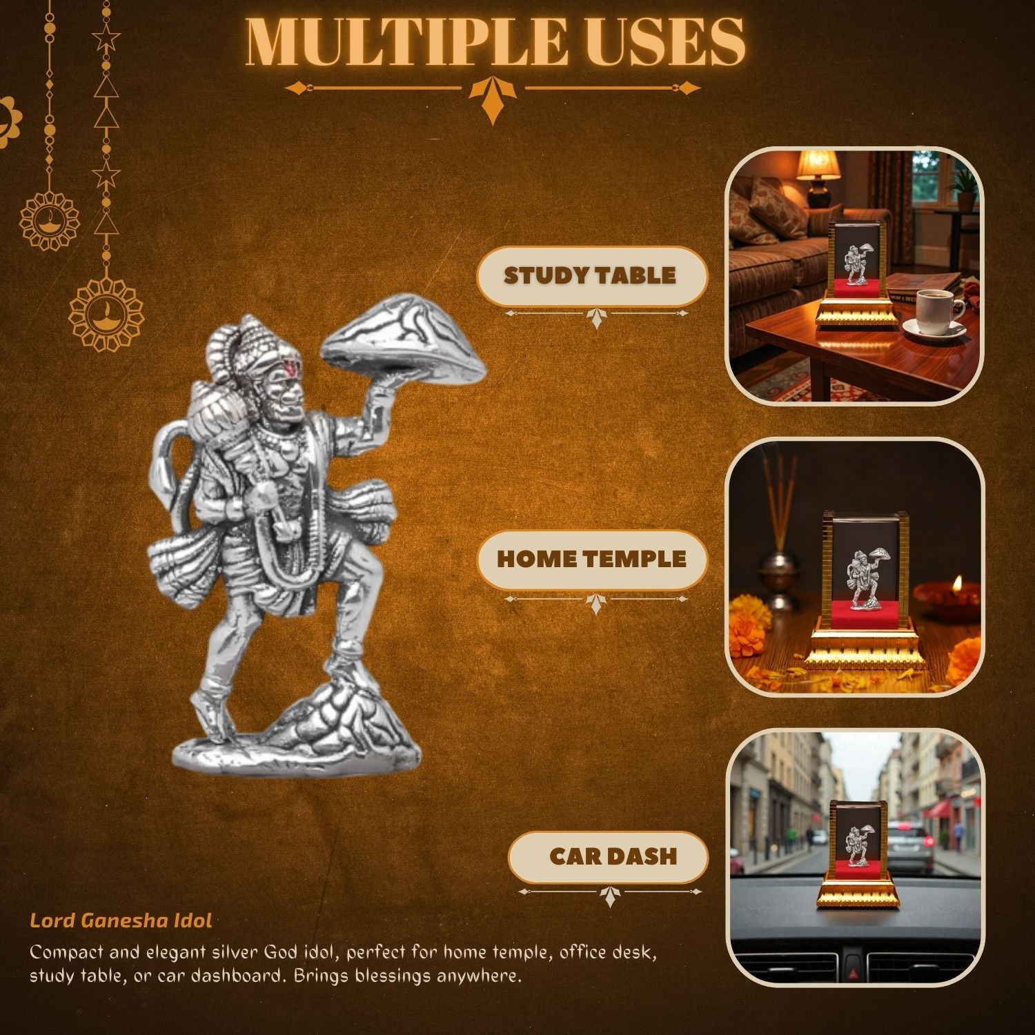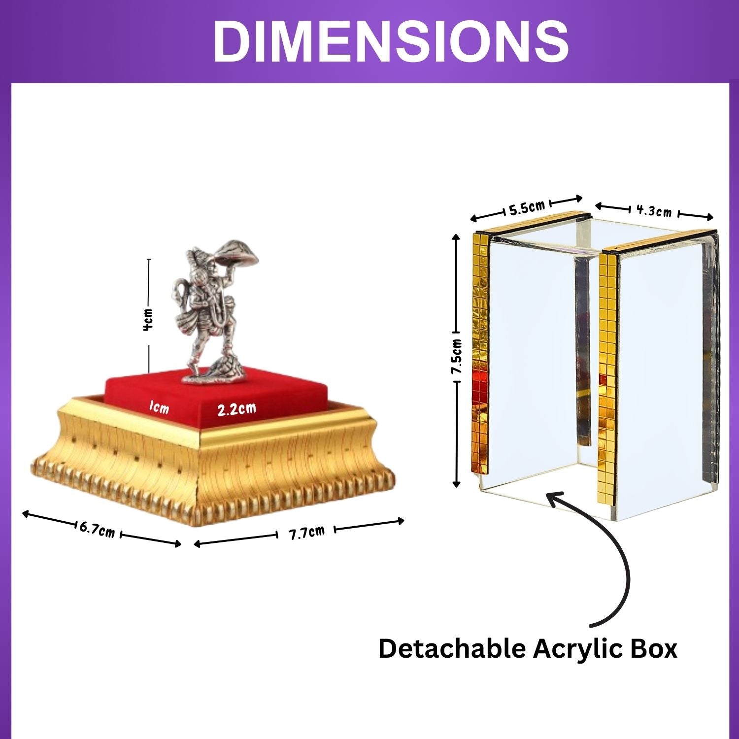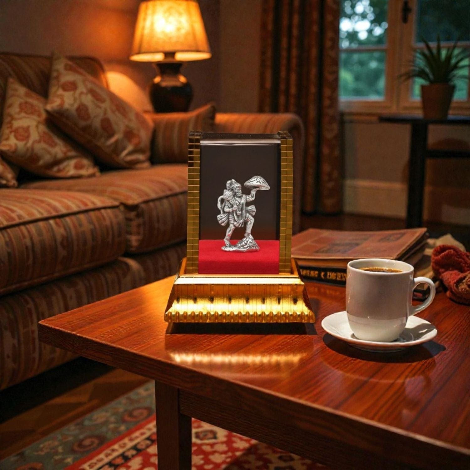 Exquisitely crafted in 99.9% pure silver, this Hanuman Ji idol strength, devotion, and peace. Encased in a clear acrylic box, it’s perfect for puja, display, or gifting.