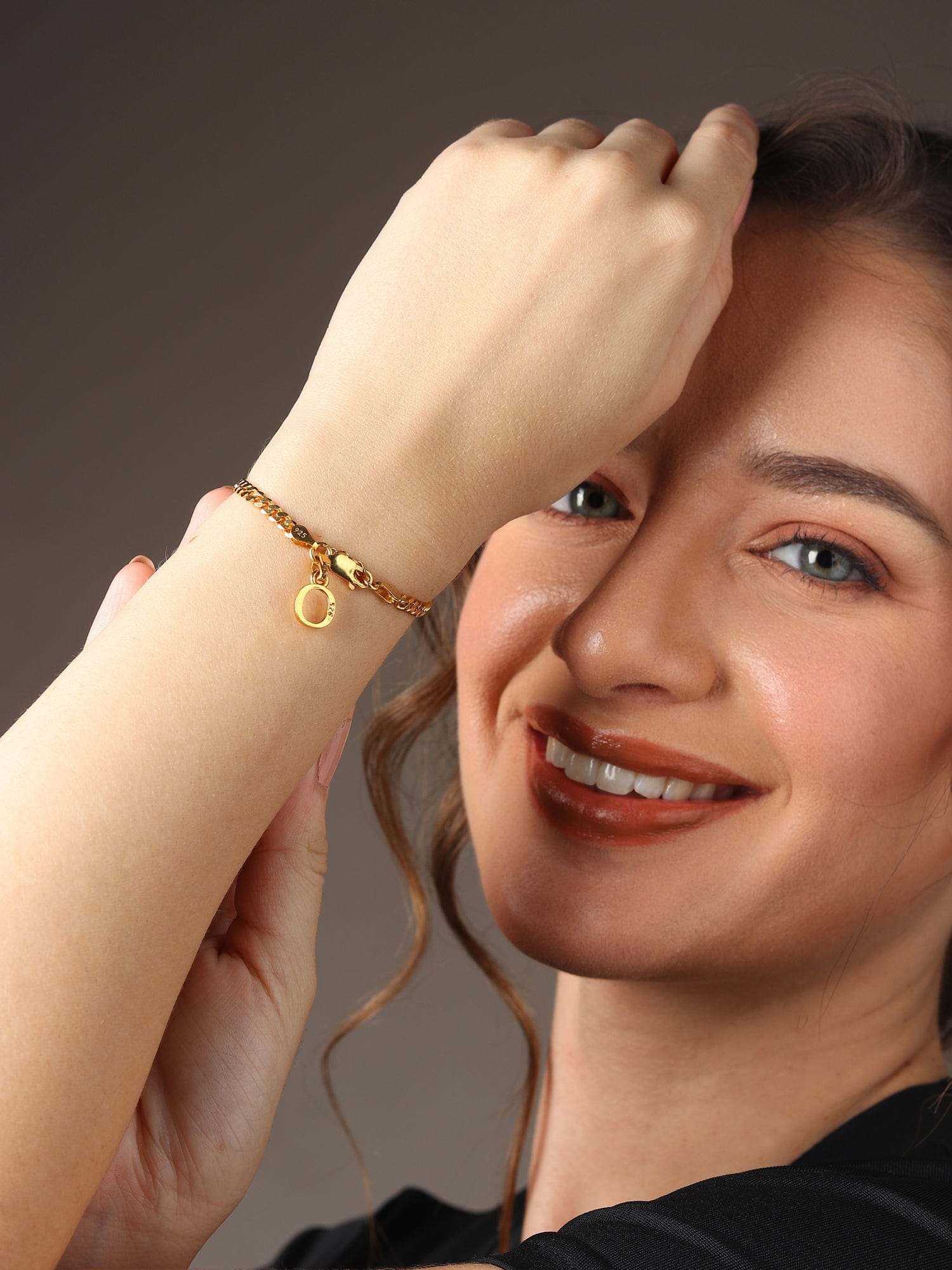 22KT gold plated 92.5% pure Sterling Silver Curb Designer Bracelet with O Alphabet for Girls and Women