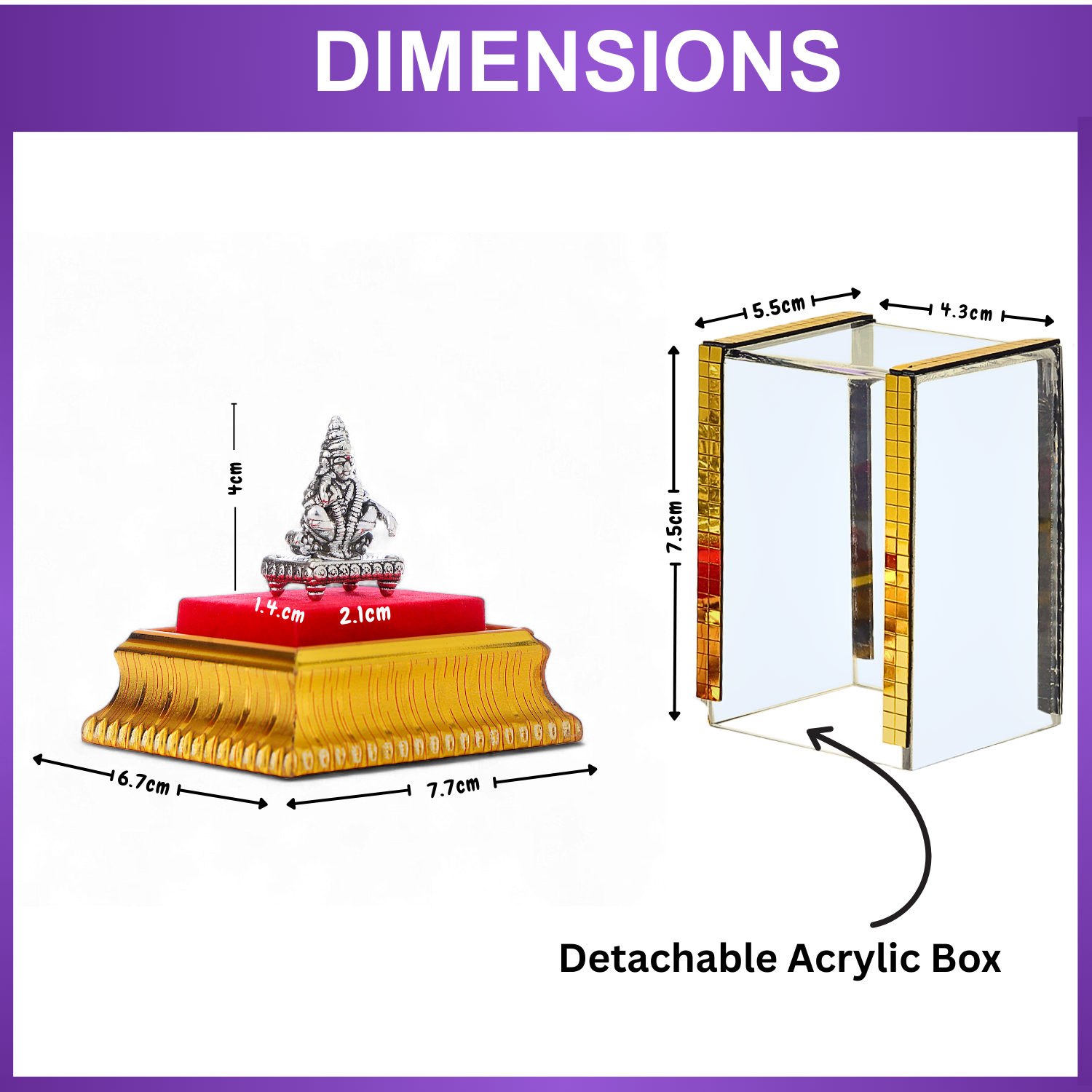 99.9% Pure Silver Lord Ayyappa Idol with Acrylic Box for Pooja Room, office desk & Car Dashboard