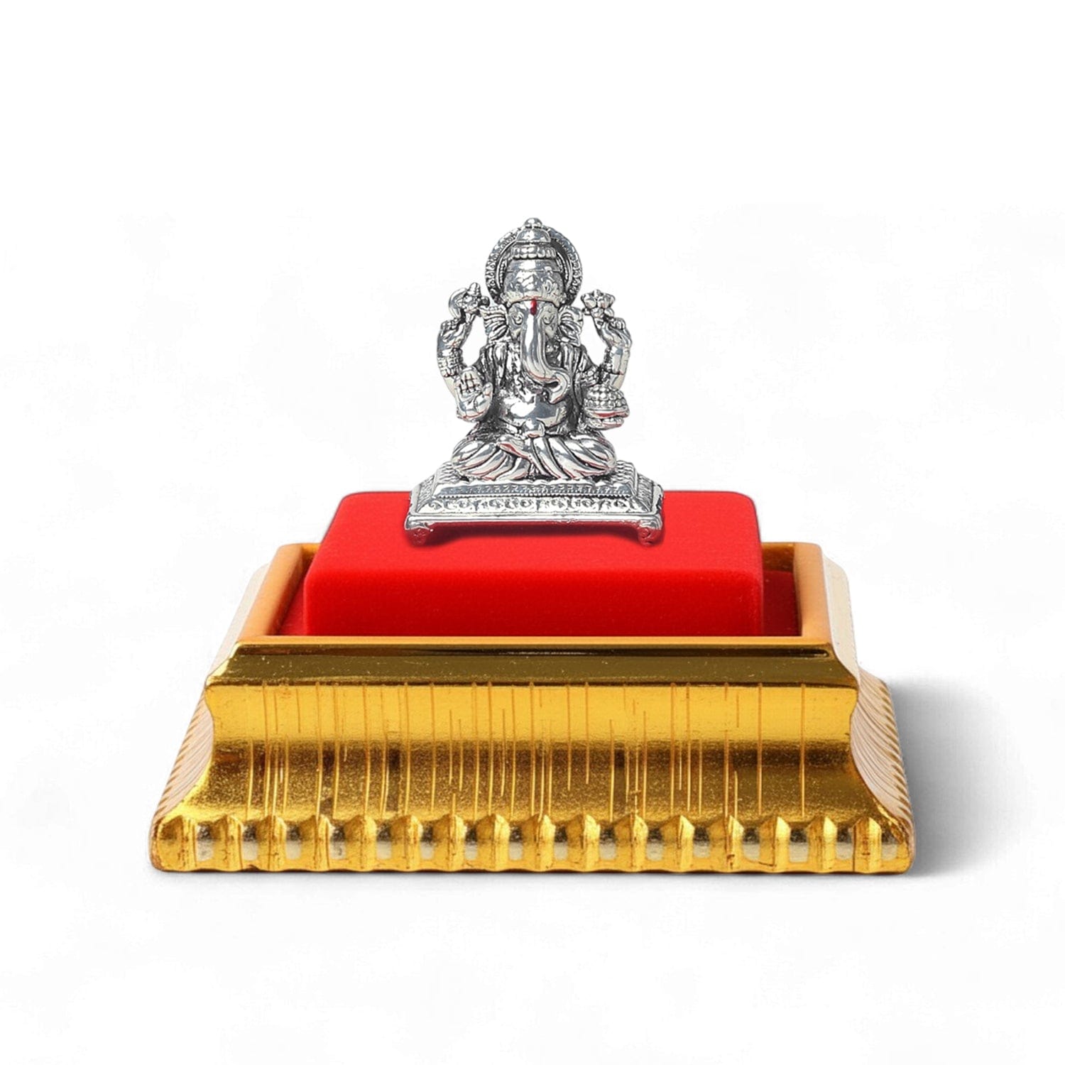 99.9% Pure Silver Lord Ganesha Idol with Acrylic Box for Pooja Room, office desk, Car Dashboard