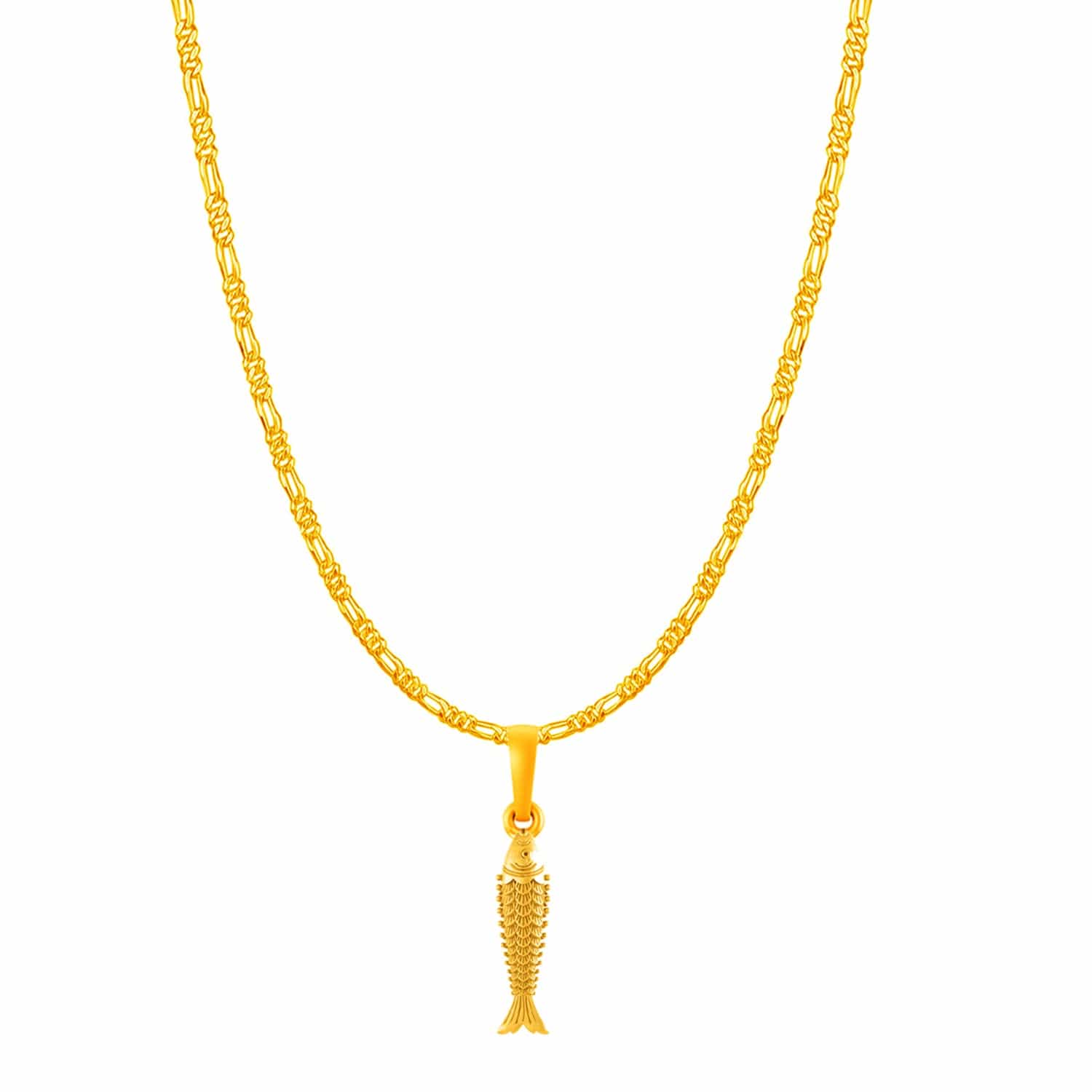 22Kt Gold Plated Steling Silver (92.5% Purity) Stylish Fish Chain Pendant Is Ideal For All Men, Women, Boys, Girls And Kids. The Design Of Fashionable Fish Locket Has Been Developed With Skilled Designers To Add Extra Look To Your Personality And Smartness. 22Kt Gold Plated Steling Silver Figaro Chain Is Very Smooth, Skin Friendly And Complies All International Standards.