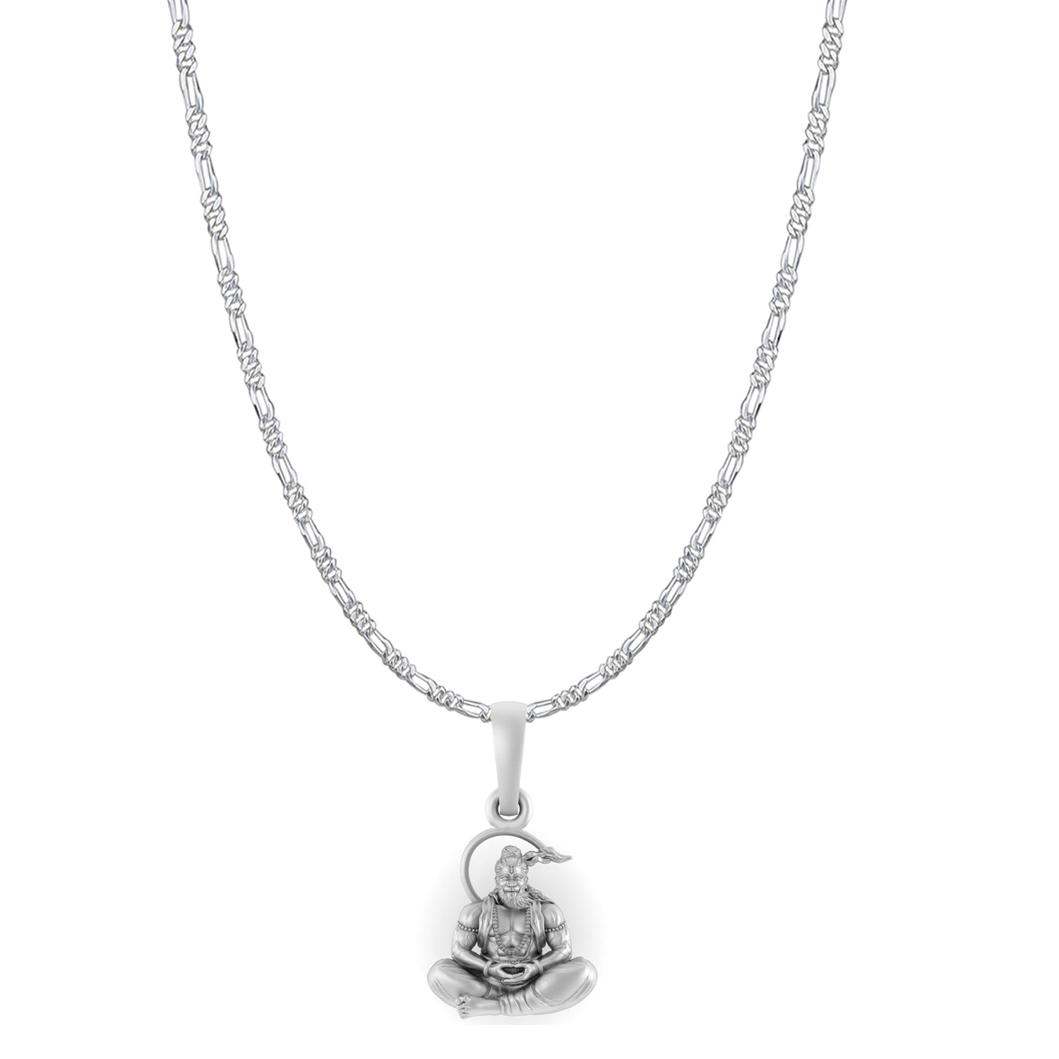 God Hanuman/Bajrang Bali Pure Silver 92.5% purity Chain pendant by (Pendant with Figaro Chain-22 inches)