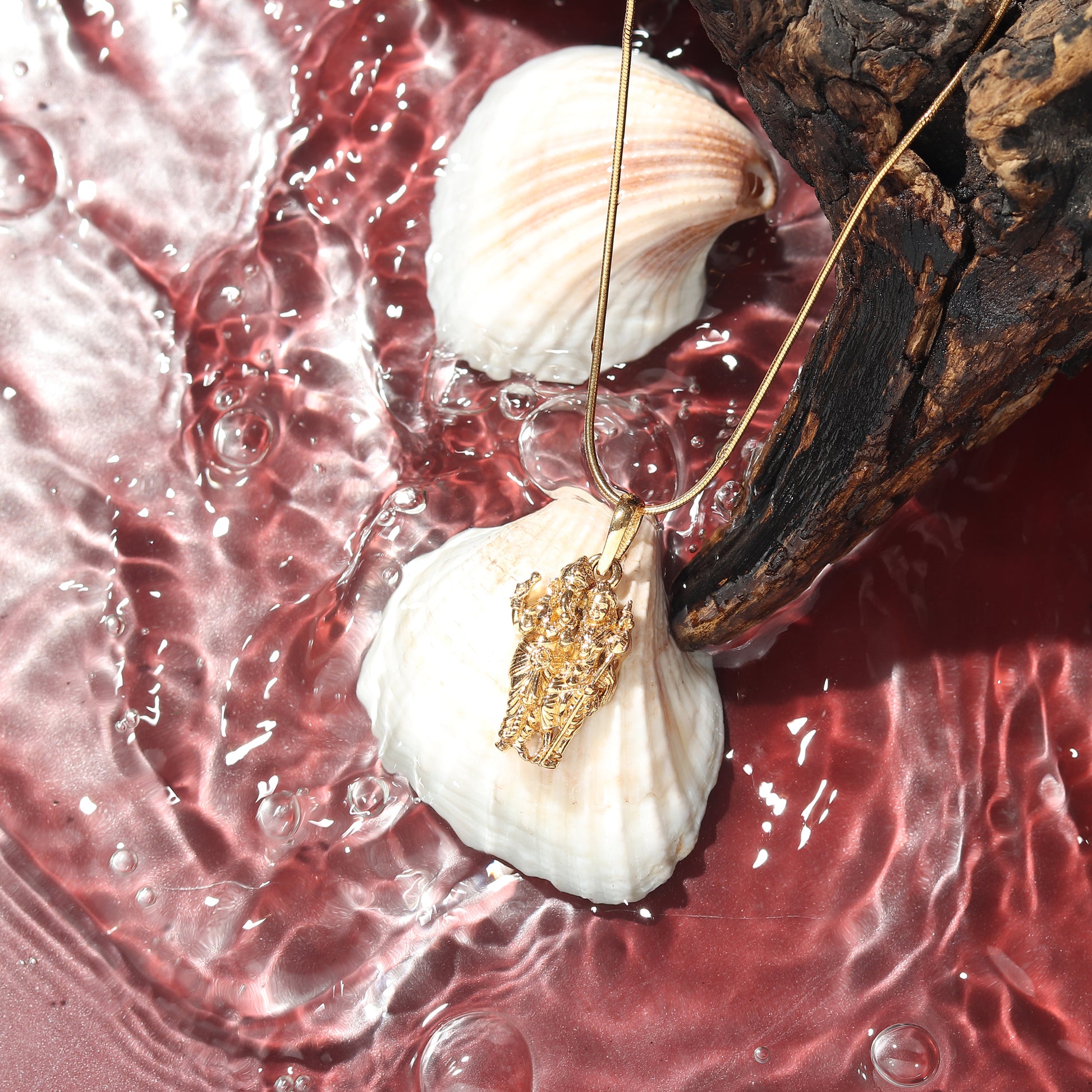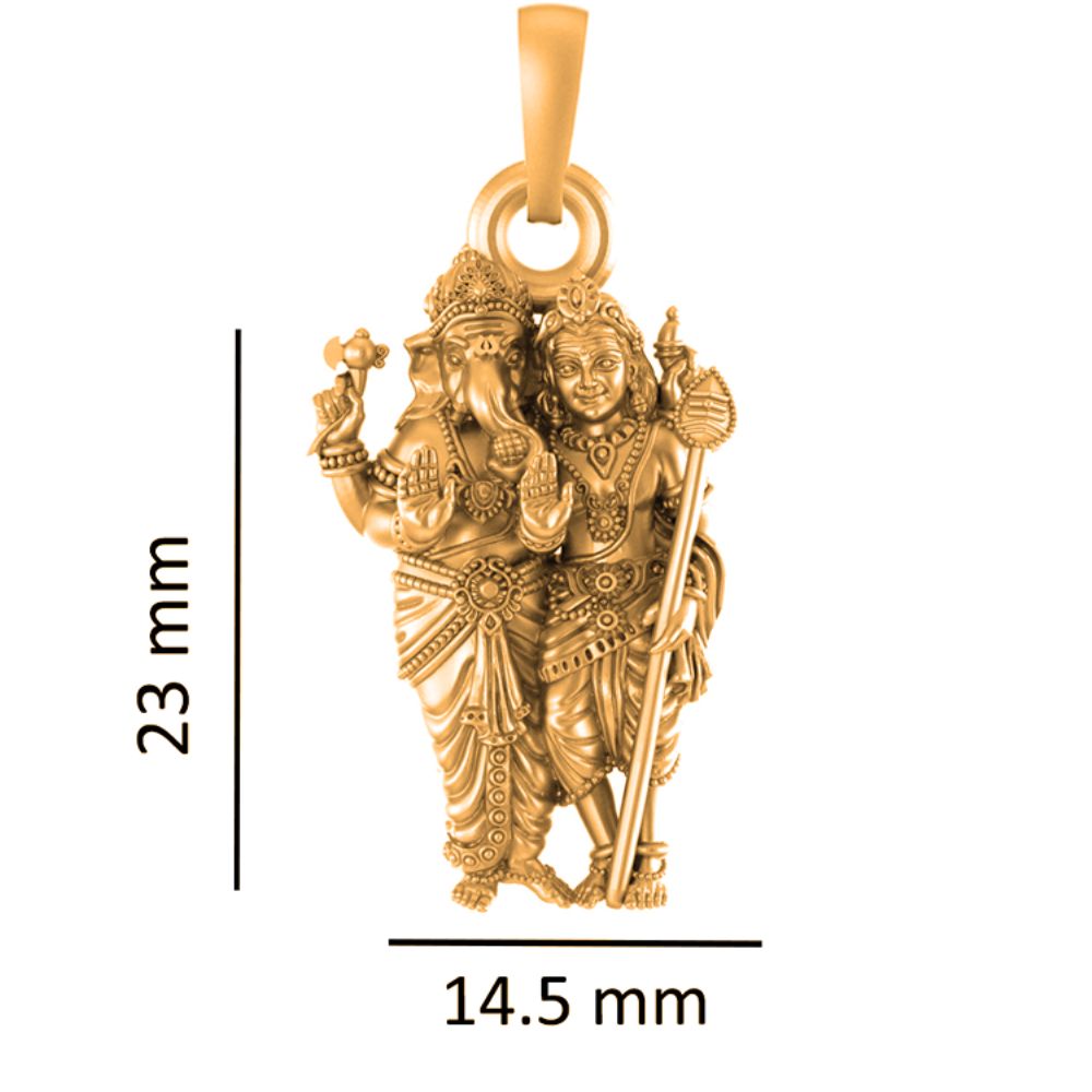 22KT Gold Plated Silver (92.5% Purity) Pure Silver God Ganesh kartikeya Brother Chain Pendant (Locket with Rope Chain-22 inches) for Men & Women