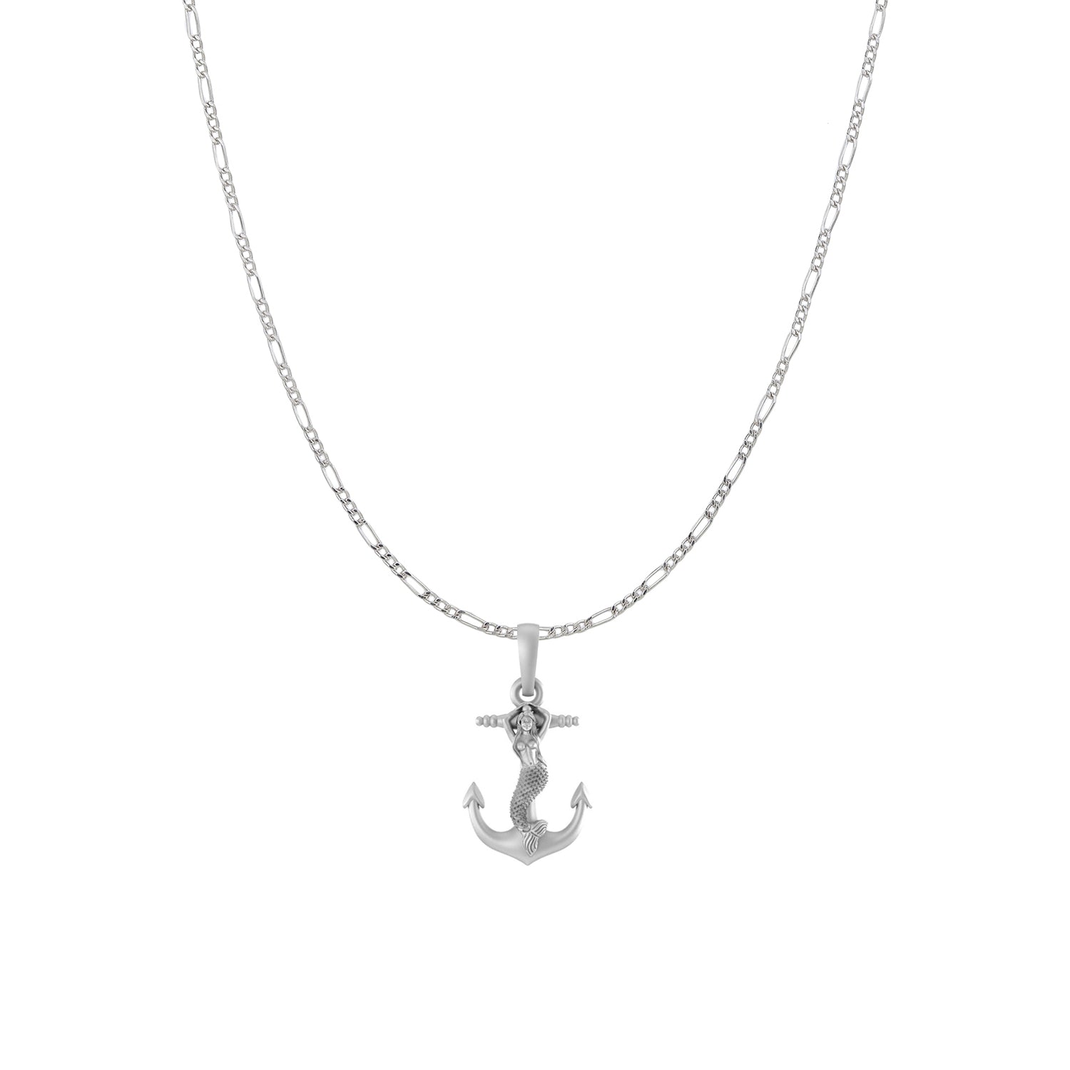 Sterling Silver (92.5% Purity) Pure Silver Ship Anchor Chain Pendant (Locket with Figaro Chain) for Men & Women