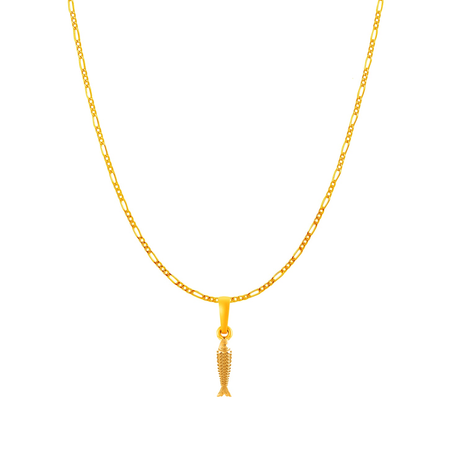 22Kt Gold Plated Sterling Silver (92.5% Purity) Stylish Fish Chain Pendant Is Ideal For All Men, Women, Boys, Girls And Kids. The Design Of Fashionable Fish Locket Has Been Developed With Skilled Designers To Add Extra Look To Your Personality And Smartness. 22Kt Gold Plated Sterling Silver Figaro Chain Is Very Smooth, Skin Friendly And Complies All International Standards.
