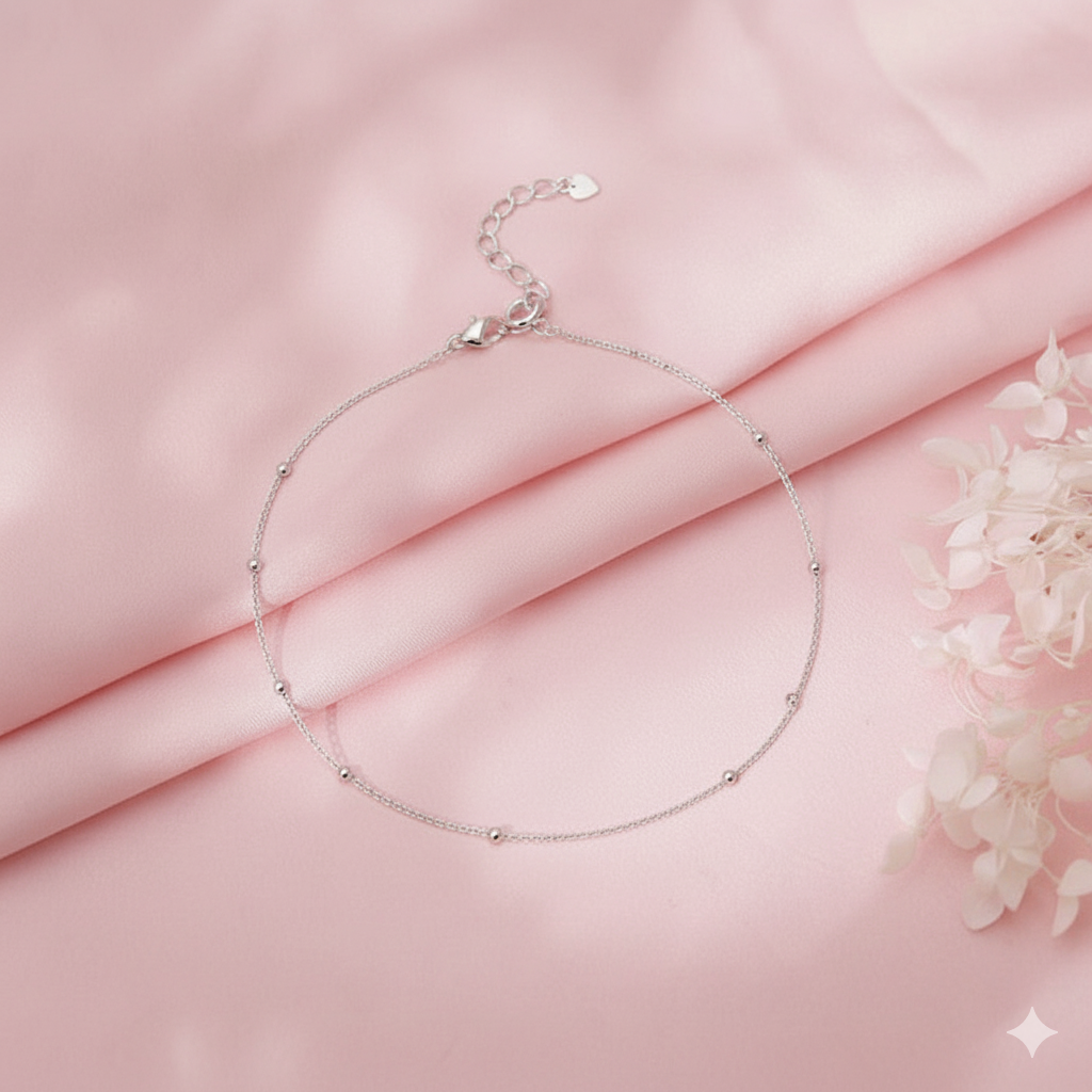 This is a beautifully crafted 92.5% Silver Plain Ball Anklet, Add a touch of elegance to your everyday style. Lightweight and comfortable, it’s ideal for daily wear, casual outings, and festive occasions. Its subtle shine makes it a versatile accessory that pairs effortlessly with any outfit. Perfect as a gift anklet or a stylish addition to your jewelry collection.