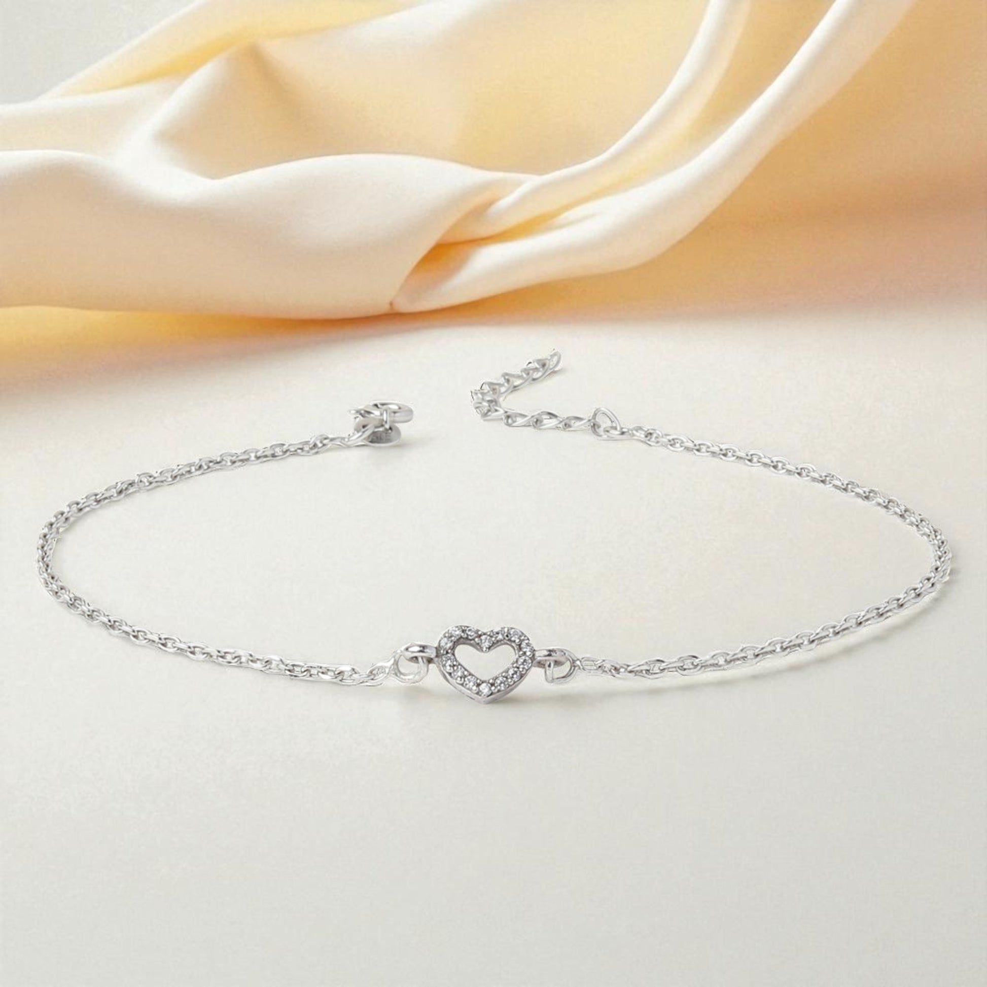 92.5% Pure Silver Rhodium Plated Forever Heart Anklet For Girls & Womens Chandi Ki Payal