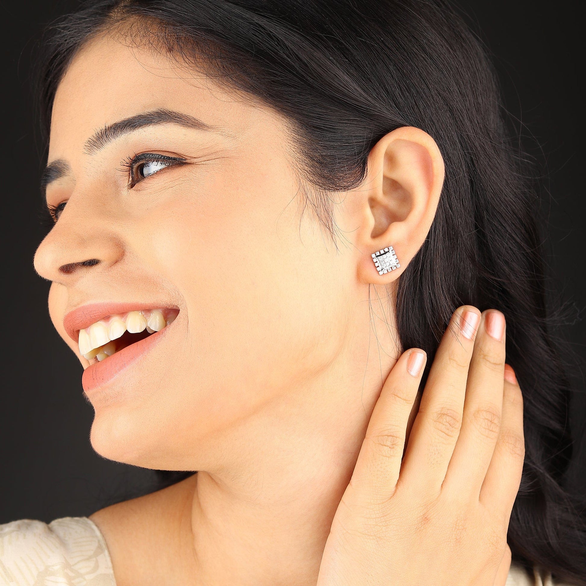 Pure Sterling Silver (92.5% purity)Precious, Beautiful and Designer Stud Earrings with cubic zirconia (AD) stones for Girls and Women