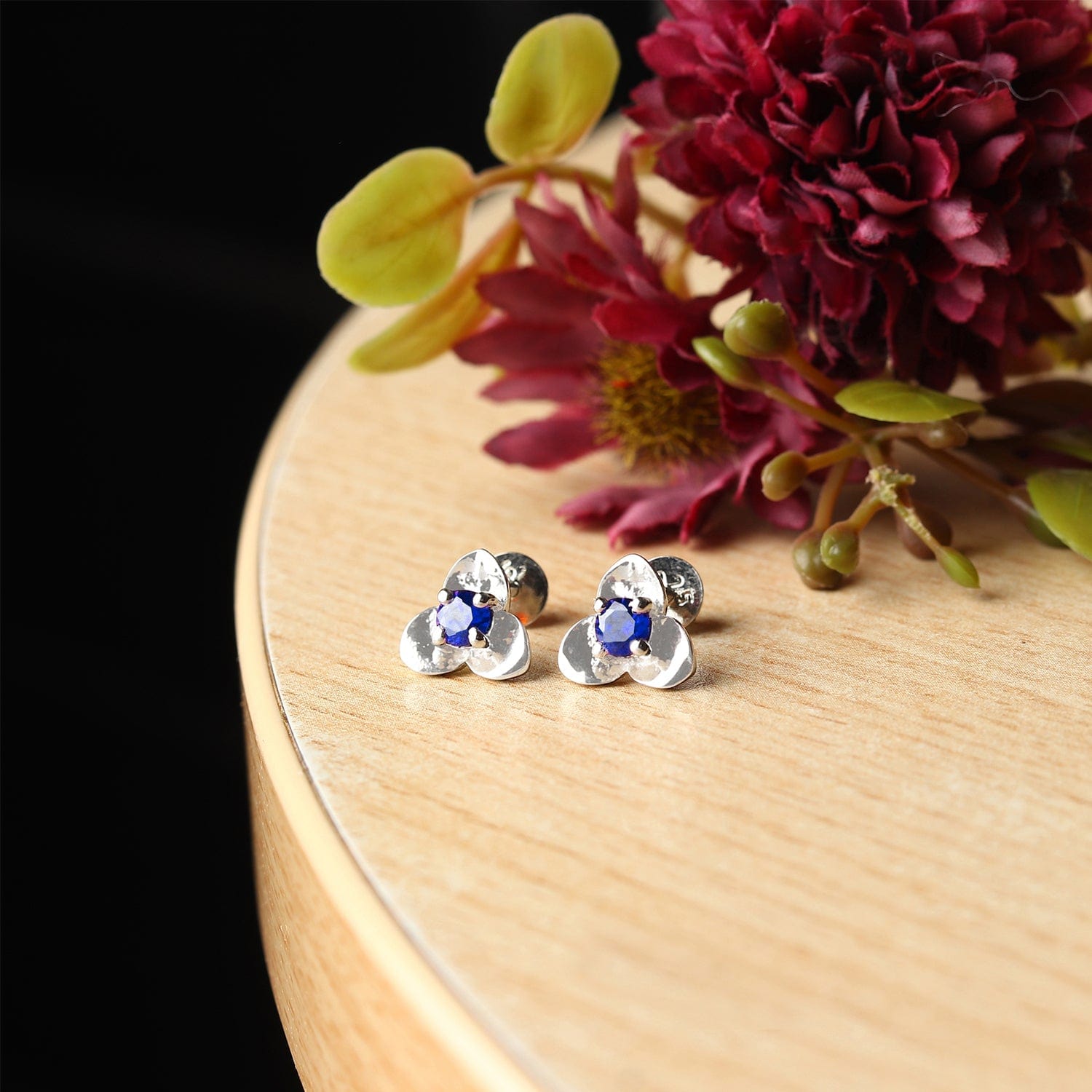Silver Stud Earrings for Women by Akshat Sapphire 92.5 Silver Rhodium Plated S10130