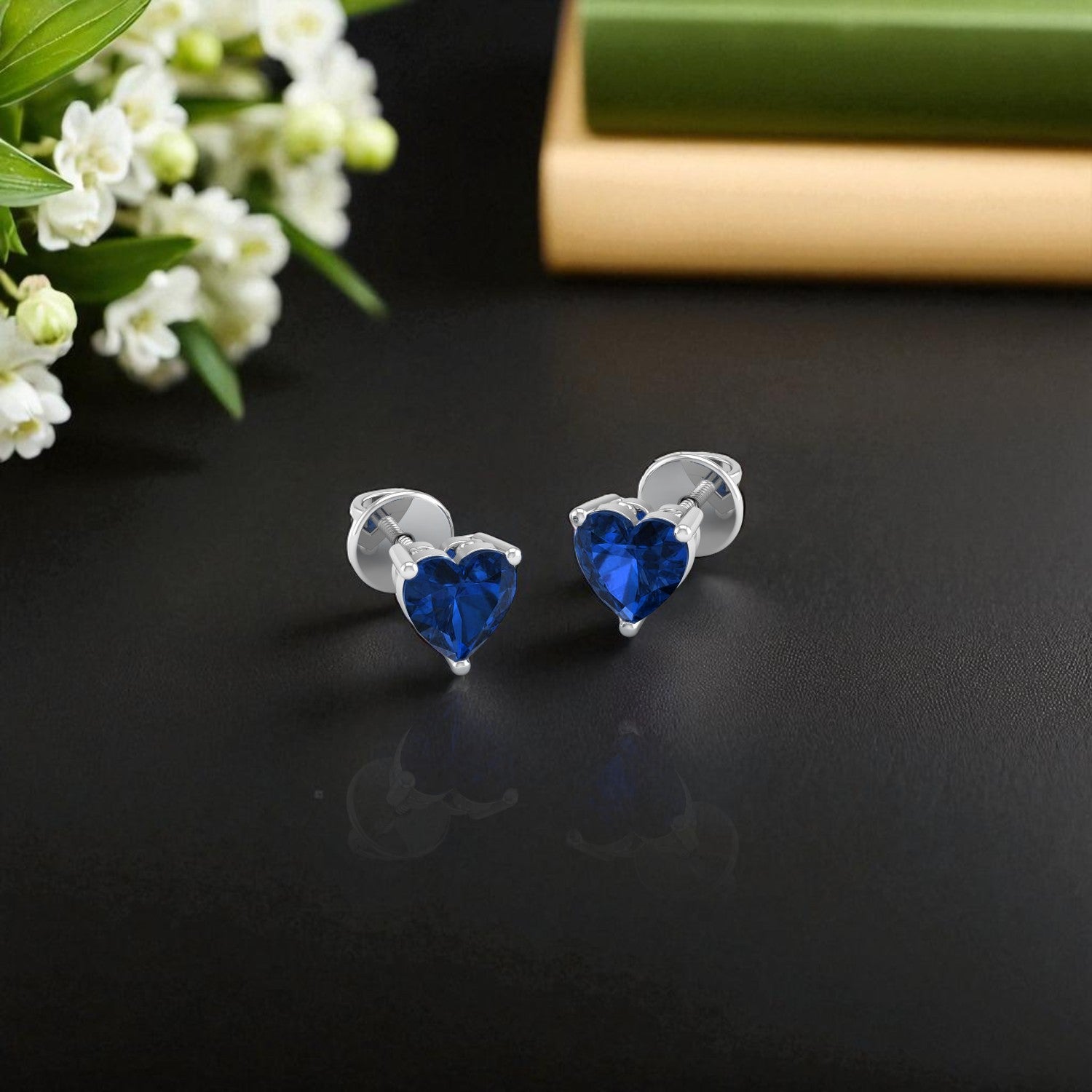 Sterling Silver Stud Earrings for Women by Akshat Sapphire 92.5 Silver Rhodium Plated S10021