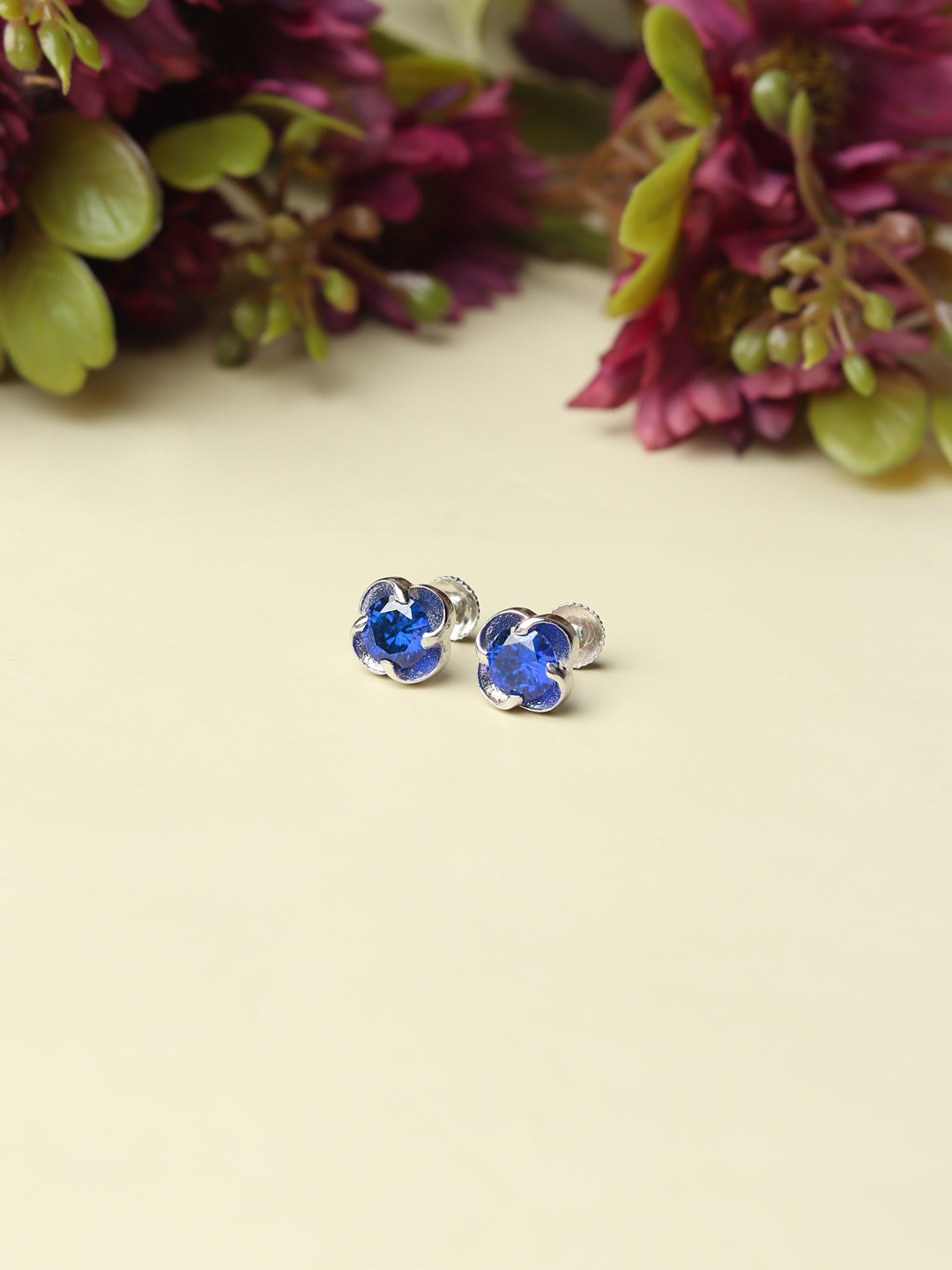 Sterling Silver Stud Earrings for Women by Akshat Sapphire 92.5 Silver Rhodium Plated S10081