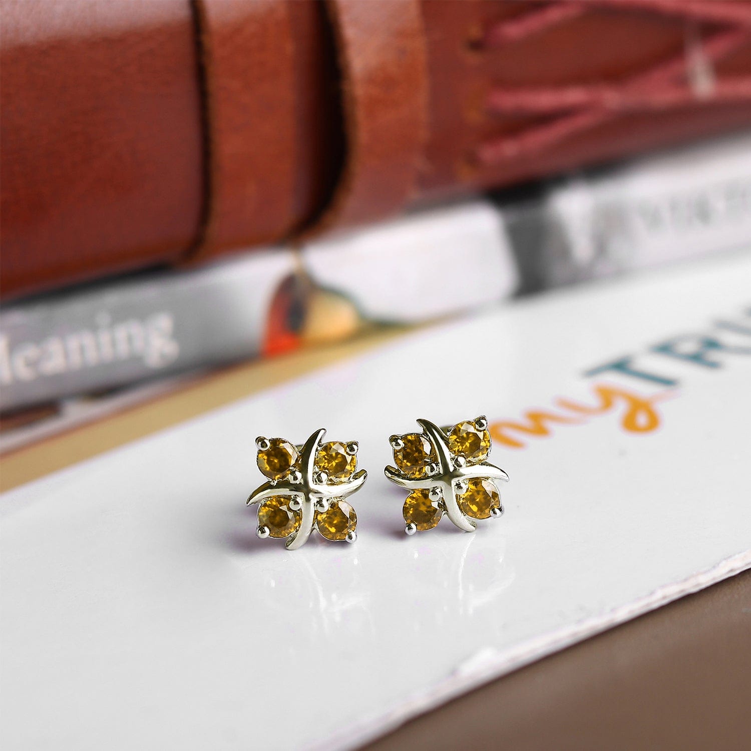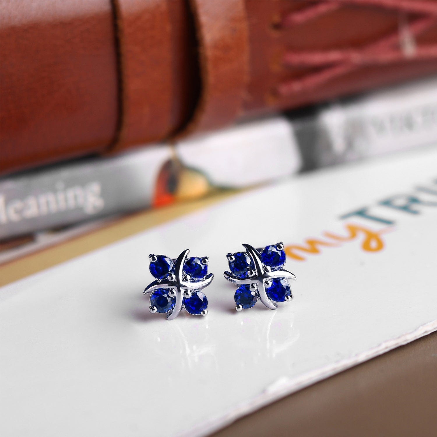 Sterling Silver Stud Earrings for Women by Akshat Sapphire 92.5 Silver Rhodium Plated S10128