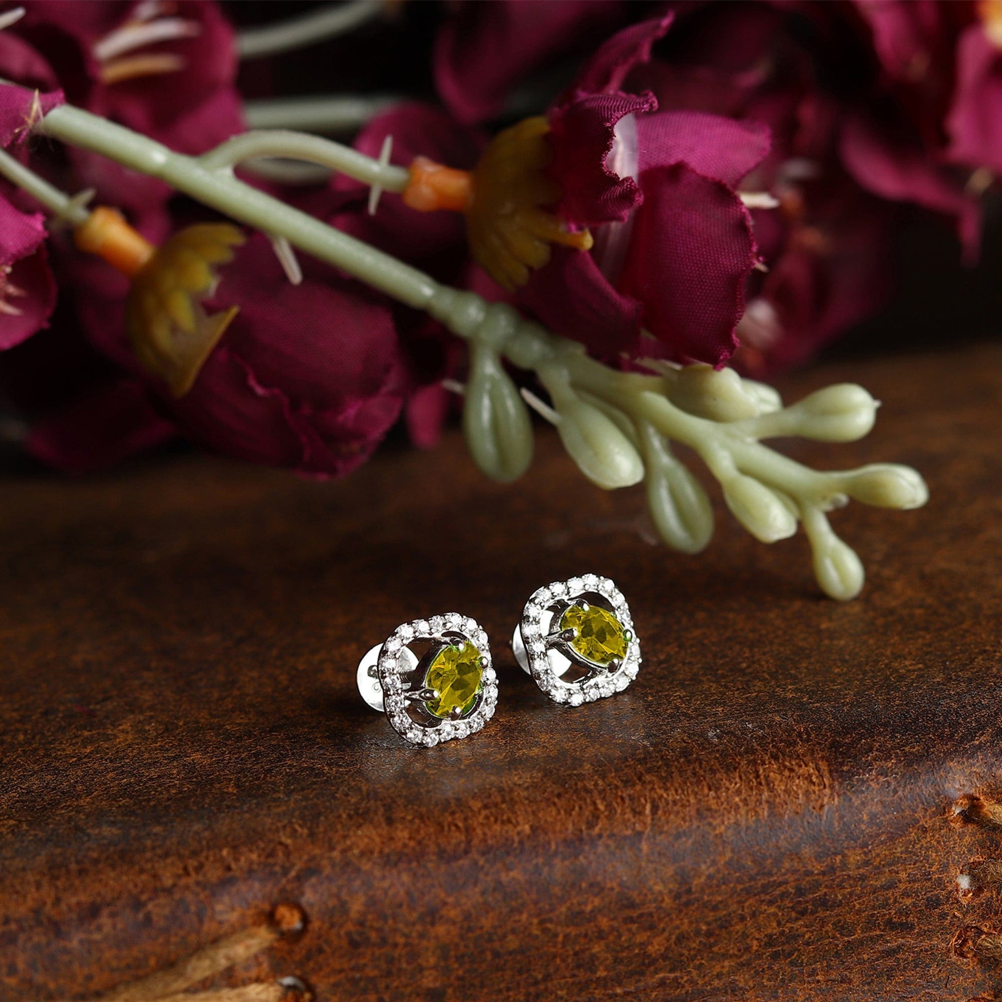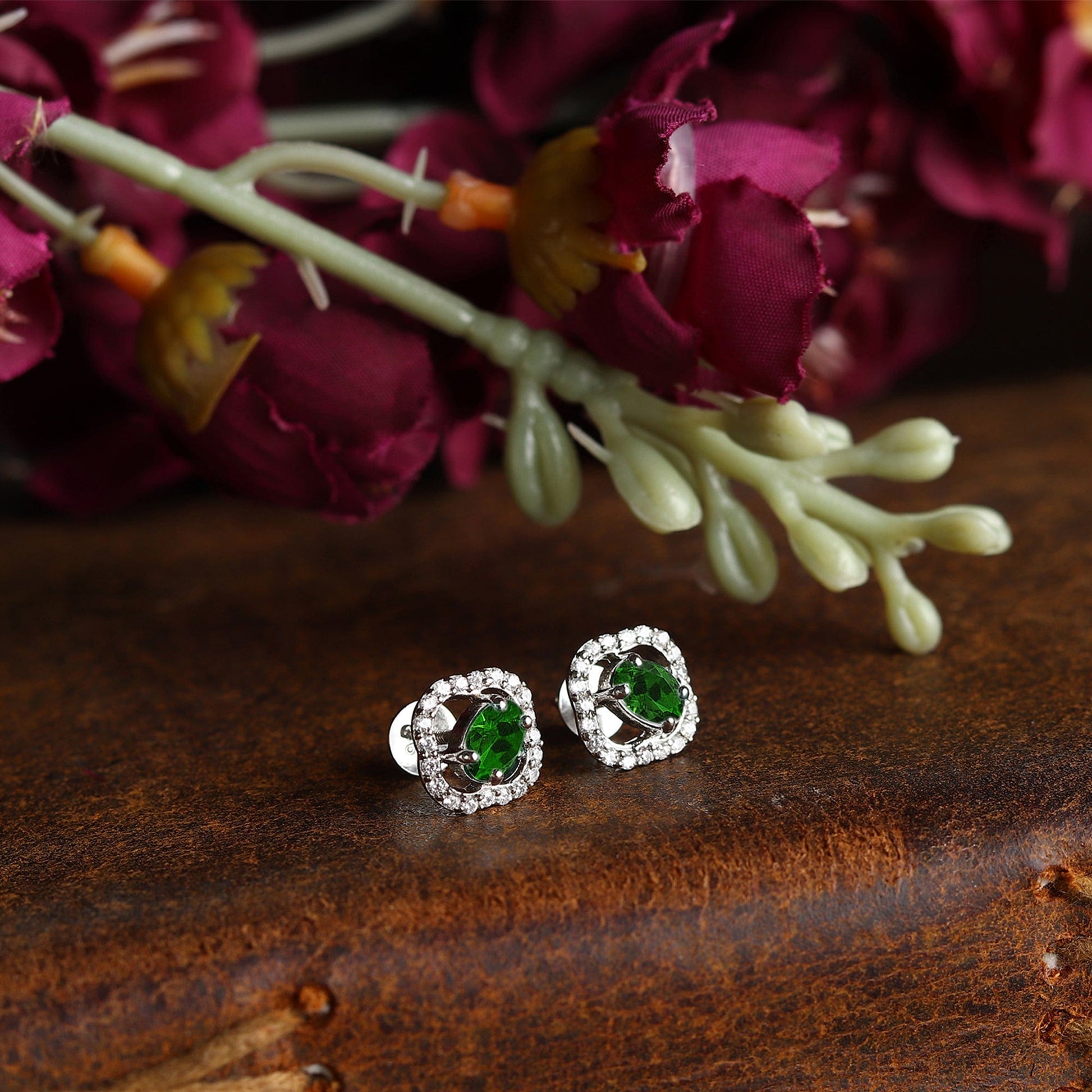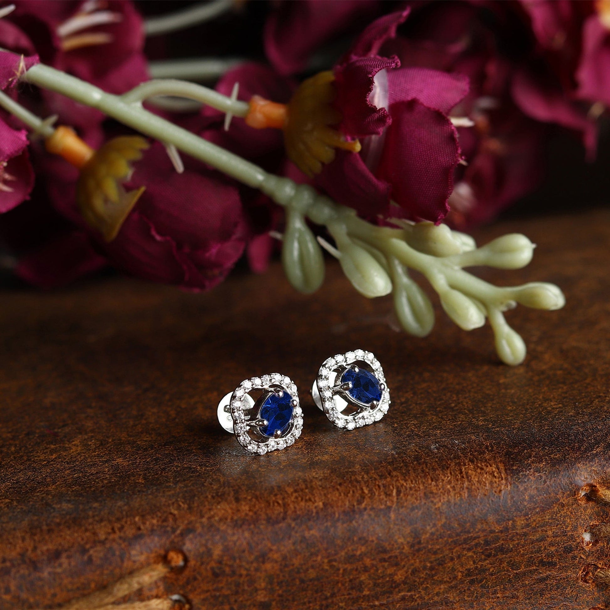 Sterling Silver Stud Earrings for Women by Akshat Sapphire 92.5 Silver Rhodium Plated S10137