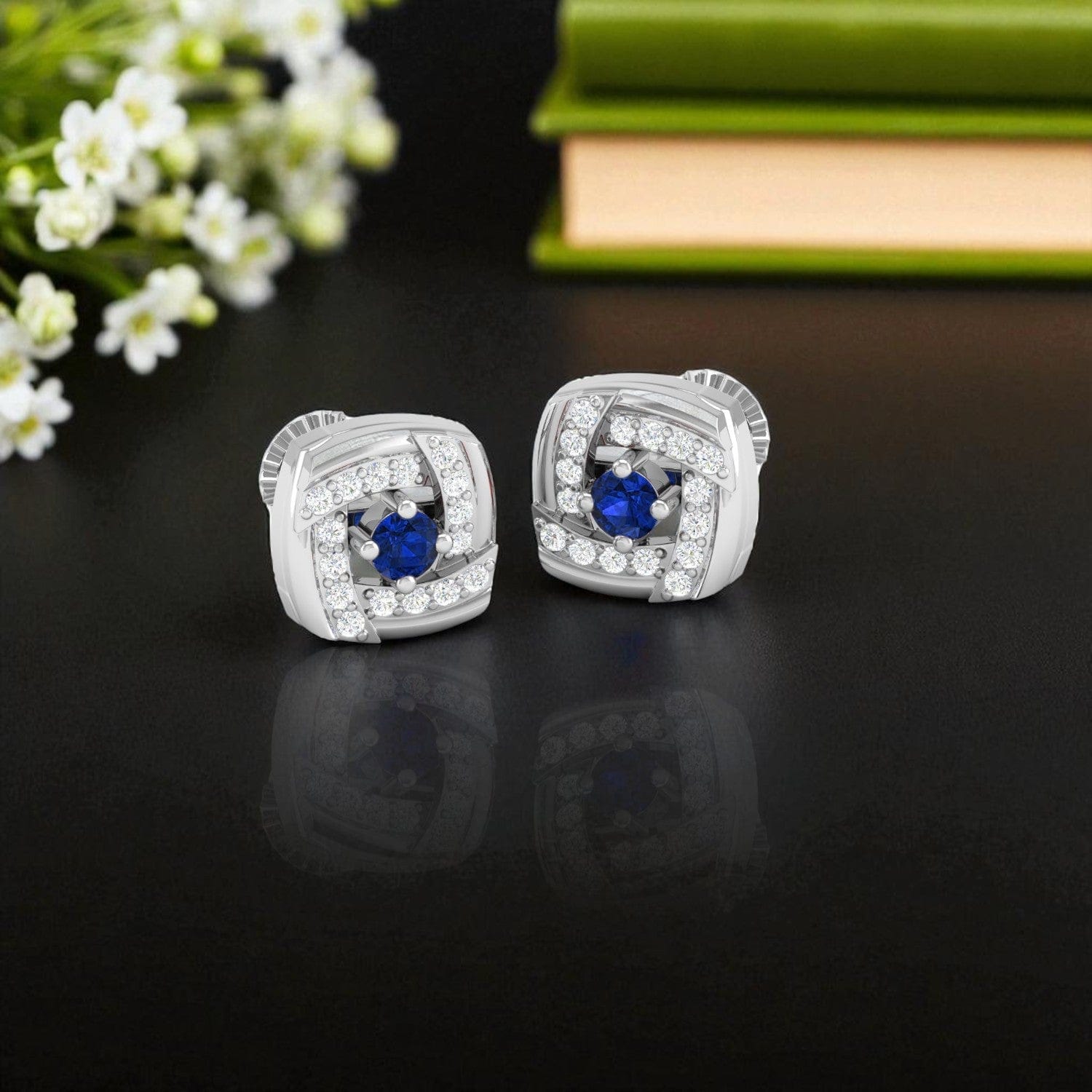 Sterling Silver Stud Earrings for Women by Akshat Sapphire 92.5 Silver Rhodium Plated S10142