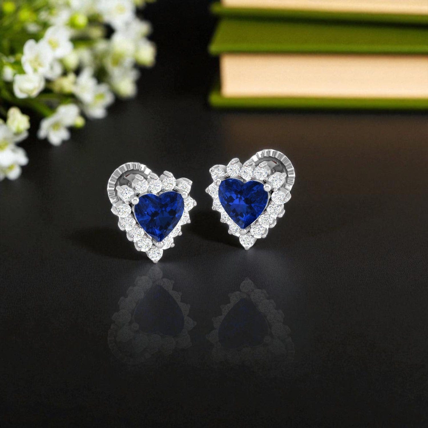 Sterling Silver Stud Earrings for Women by Akshat Sapphire 92.5 Silver Rhodium Plated S10150